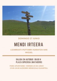 Este domingo 19 de septiembre salimos a Besaide. Para apuntarse a la salida estaremos en la sociedad el viernes de 19:00 a 20:00