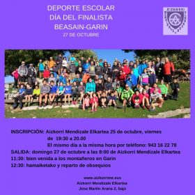 Excursión montañera educativa este domingo